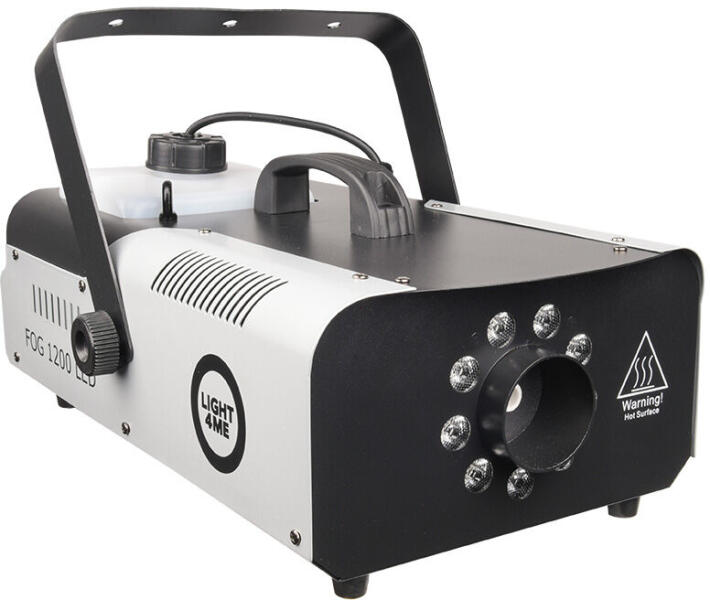 A Light4Me Fog 1200 LED egy kompakt és nagyon hatékony füstgép (ködgenerátor), amely a kibocsátott ködöt megvilágító RGB LED-rendszerrel, valamint vezeték nélküli távirányítóval és DMX protokollal történő vezérléssel rendelkezik. A gép 1200 wattos fűtéssel van felszerelve, így gyorsan felmelegszik. A berendezés tökéletes munkaeszköz mobil DJ-k, zenekarok, valamint különféle rendezvényeket szervező cégek számára. Kiválóan alkalmas színpadra, táncklubokba, diszkókba éppúgy, mint esküvőkre vagy szilveszteri bulikra.